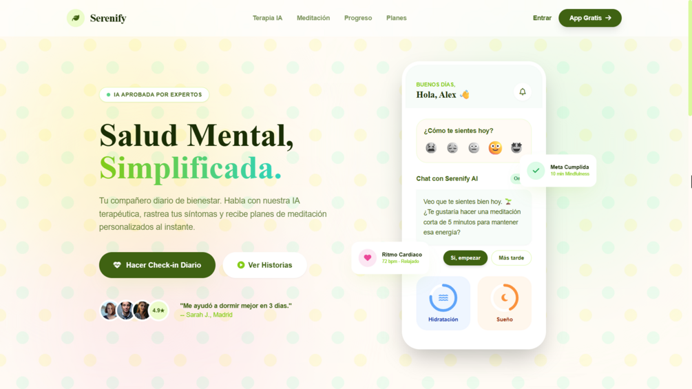 - Serenify (HealthTech) – Soft green/white wellness design